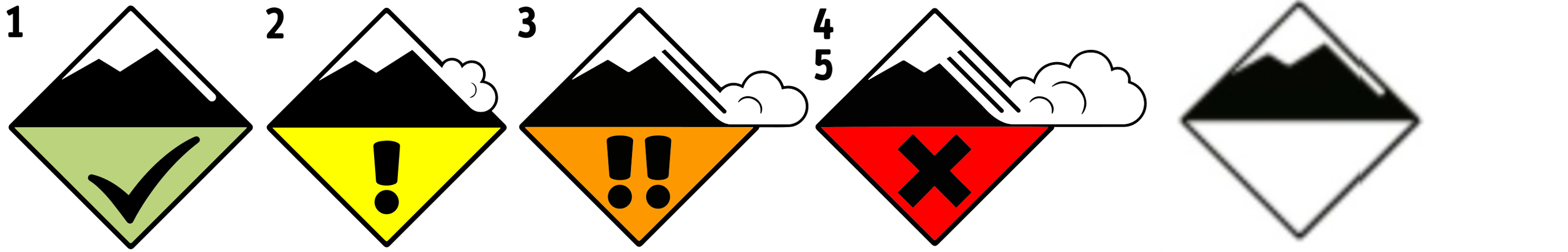 b_danger aus den Bulletin Daten aufgeschlüsselt. Es wird unterschieden zwischen: low, moderate, considerable , high ,very_high, no_snow und no_rating. Die Dargestellten Piktogramme sehen wie folgt aus: