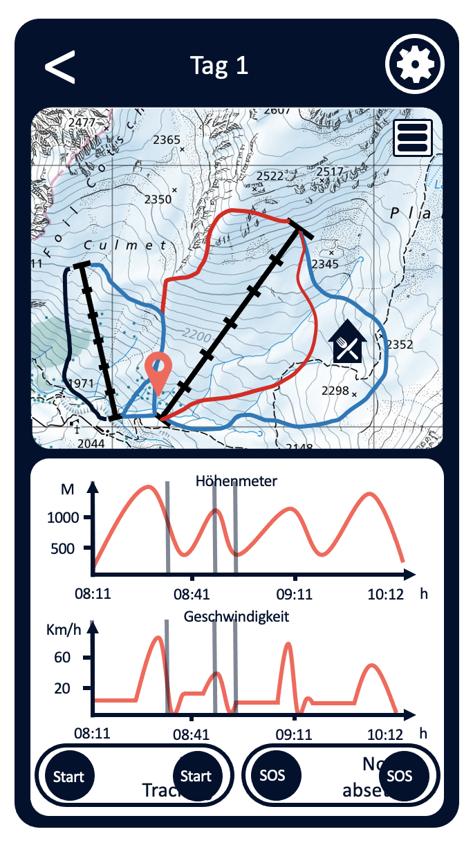 Um den Vergleich von Skitagen zu vereinfachen, wird ein Live-Tracking in die App integriert. Dadurch ist das Aufzeichnen nicht mehr von einem zusätzlichen Gerät wie einer GPS-Uhr abhängig. Die Tracking-Funktion kann einfach durch ein Wischen eines Buttons von links nach rechts aktiviert werden.