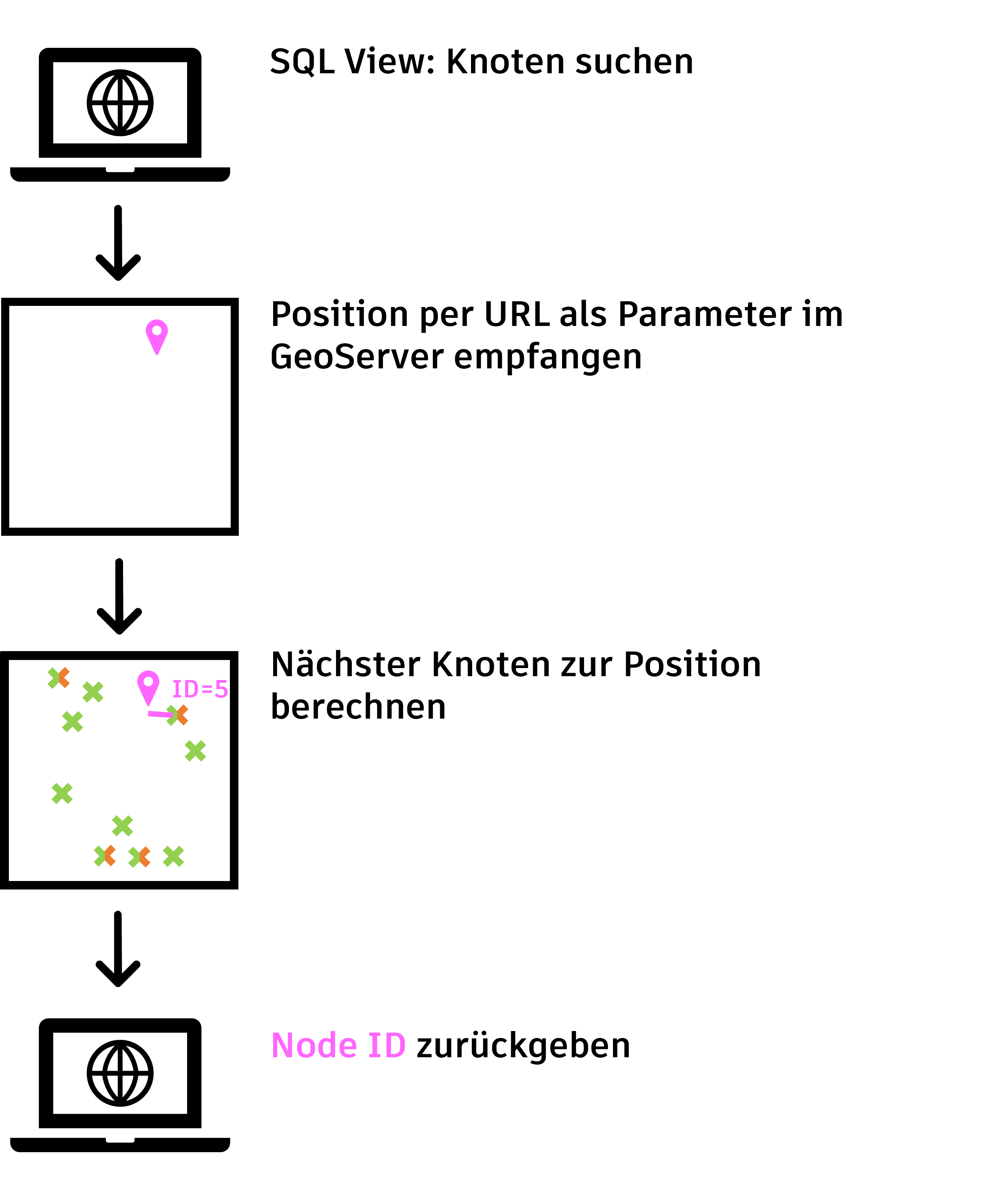 SQL Views : Mit SQL Views auf dem GeoServer können nur gewünschte Objekte per WFS bezogen werden. Die Parameter werden dabei per URL übergeben. Es konnten verschiedenste SQL Views mit unterschiedlichen Parameter, Wertebereiche und Funktionen kreiert werden.